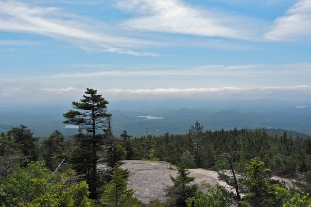 I need to do a lot of walking to offset all this food I’m eating, so hiking continues to be part of my Summer routine. I try and do two each week, usually around 5 miles each. Of course there is no sense in putting the effort into a hike if you don’t get the payback of great views of the White Mountains. My goal is to summit one of the 4000 footers by the Fall. I don’t think I’ll ever do Mt. Washington in this lifetime. At nearly 6300 feet, it’s a tough climb. Two people have died on it so far this year. Between the remote and rugged terrain and the rapidly changeable weather it is a summit to be treated with respect.  I did get some nice pictures of it this weekend from Low’s Bald Spot. Doesn’t look like much does it?