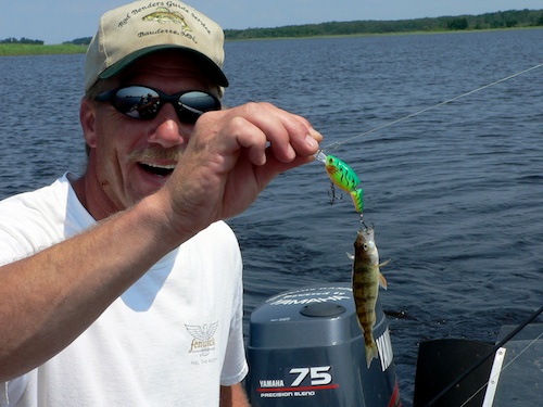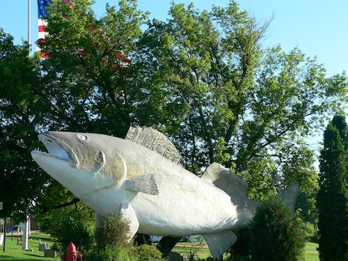 We drove along the Rainy River and an hour later we arrived in Baudette, greeted by Wally Walleye, the town mascot. Baudette is small but functional, catering to mostly fisherman and snowmobilers. Our camp, the Wigwam resort was on a pretty spot where the Rainy River meets the Lake of the Woods. The camp itself left a lot to be desired, with run down double wides and boats on trailers, lots of mosquitos and no internet. We were the only RVers. Oh well, roll with the punches. We were here to fish.