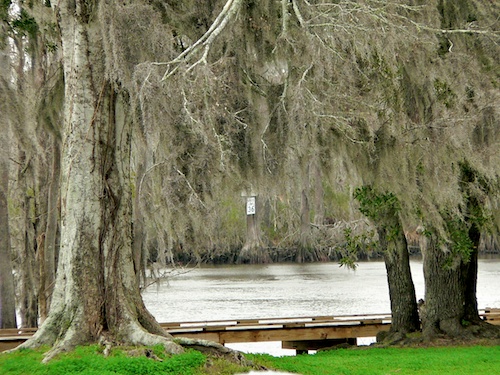 You can plan just about everything you need for a road trip, except the weather. We arrived at Fairview Riverside RV in Madisonville, Louisiana just as a cold front came through bringing 40 degree temperatures and driving rain. The park is beautiful, on a river, a perfect spot for some fishing, but too cold and rainy to enjoy. Even our Golden Retriever is not interested in staying out too long. What a change from the beach weather  we had the day before in Florida’s panhandle.