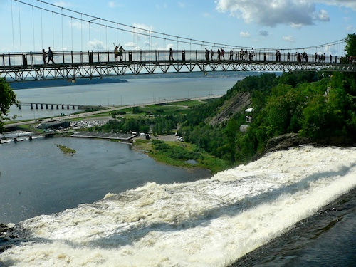 Chute-Montmorency forms where the Montmorency River falls over a cliff into the St. Lawrence River. It was quite spectacular. We climbed a long set of stairs to the top and enjoyed the view down as we stood on the suspension bridge that spans the gorge, as well as the views back to Quebec City. It is 98 feet higher than Niagara Falls, but looking at the photos of both, I don’t really think they can be compared. As I said, tourism bureau hype needs to be factored in when choosing places to see. In this case we were glad we made the drive.