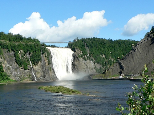 Take our visits to the waterfall, Chute-Montmorency, and Ile d’orleans, an island in the St. Lawrence. We were in the middle of touring Quebec. Our stay in Quebec City was everything we expected, and we spent a lot of time there. Looking in the neighboring area we found Chute-Montmorency, billed as being “bigger than Niagara Falls,” just north of Quebec City. Also right there was Ile d’orleans, also known as the “Garden of Quebec,” offering lots of fresh produce and fruit, as well as insight into the roots of Quebec’s French culture. Having loved our visit to the real Niagara Falls, it sounded like a great day trip to us.