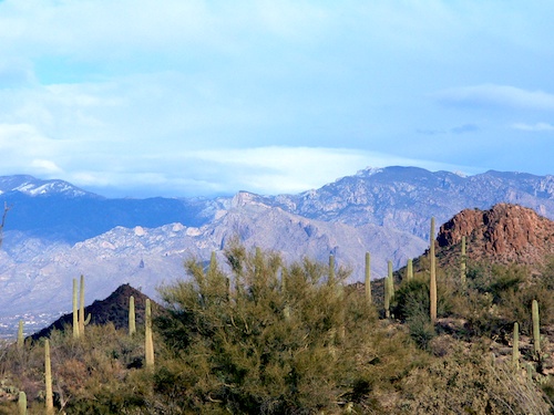 The road from Las Cruces to Tucson put us in higher elevations and we saw the remnants of the snow that closed the road two days ago. We enjoyed the alternating desert and mountain scenery. Tucson is in a valley surrounded by four mountain ranges. It’s a big town, over 800,000 people and lots of sprawl and smog. We pulled into the Prince of Tucson RV Park. It is an over 55 community and most of the sites are occupied by retirees and snowbirds. We have a narrow little site, jammed between two singlewide trailers. The site was so tight, with no margin for error, that they sent someone from the office to help us back in. This is urban camping at it’s worst. Land in town is at a premium so they allocate barely enough space for one trailer to slip into. It may maximize profits, but we feel like we are camping in Brooklyn.