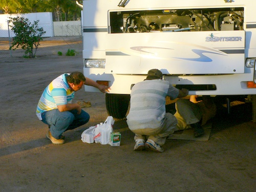 I know your Mexico trip is not “real time” but those mechanics look a lot like hot dog salesmen and bought the equipment from WalMart. Looking forward to the next instalment and to hear that everything worked out OK. Cheers