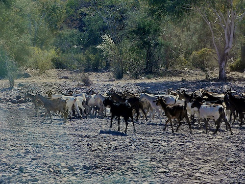 The trip was worth the wait. We found an ancient olive tree, were stopped by a heard of goats led by a dog, we navigated scary hairpin turns on a dirt road that climbed into the mountains. We stopped at some “questionable” Indian drawings (the authenticity was in doubt, according to Leighton,) we crossed a continental divide where the water begins its run to the Pacific, we saw the original donkey trail, from the mid 1600’s, that was used to get up to this oasis in the mountains.