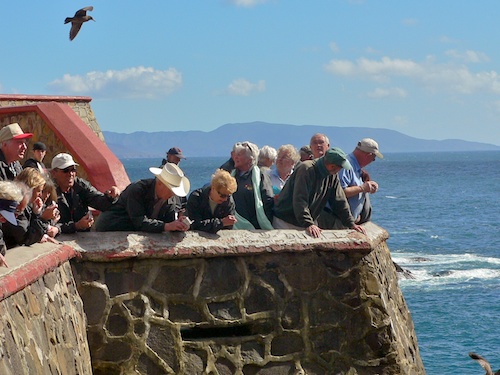 Our farewell dinner was at the restaurant and consisted of filet and shrimp. There was a lot of picture taking and thanking of our tour guides and before we knew it the trip was over. Hugs and goodbyes and promises to keep in touch abound. I doubt we’ll hear from many of them as we all head our different ways. We headed out at six AM and spent our last 500 pesos on gas. We hooked up the car and waited on the main drag for the rest of the caravan to arrive. The drive to the border was the worst yet. It’s another narrow, curving road, but this time we have gale force winds that slow us down to a crawl. Several people have to stop and rein in their awnings. The border crossing is uneventful, they took an avacodo and two lemons. An hour or so later and we are back at the Chula Vista Marina RV park. It’s been six weeks. We’ve covered nearly 5000 miles. We’ve seen lots of sights, met a lot of people and generally had a good time. We are sure we won’t be going on a caravan again, it’s a little too regimented for us and that seemed to be the general opinion of our fellow travelers as well. For us, it’s back to Florida for a rest and then on to a tour of the some of the national parks on our way to Glacier National Park in Montana.