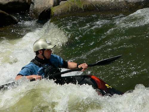Of course, most people take the trip down river, following the natural flow of the rapids. This fellow had a different idea, he was going up the rapids, not always successfully…