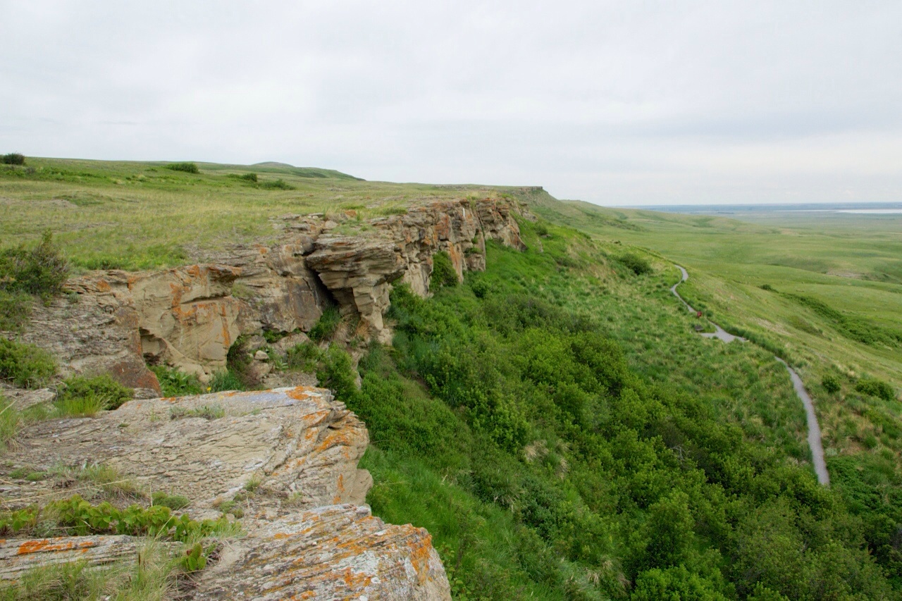 Wandering along the cliff, following the path at its base, looking out across the plains, watching two red tail hawks soar above, I tried to imagine the area filled with tipis, drying racks and cooking pits. I imagined the joyful sounds of a community working toward a common and important purpose. I tried to not think of the sounds of dying animals or the sights and smells of blood and slaughter. However, if you walk on the paths of those who lived here, you kind of need to accept the whole package. It is not quite the same as heading to the Piggy Wiggly for some chop meat or chicken cutlets.