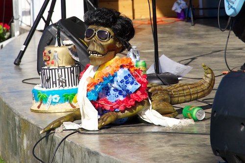 They have a number of weekend festivals to lure the visitors. I would have liked to been there for the kite festival, but we wound up with the celebration of Jake’s 75th birthday. Jake is this rubber figure with the head of a man and the body of an alligator, a local icon I gather. They used the event to have 5 bands, an antique car show, games for the kids and raise money for breast cancer. The one band we were there for, the Graceland Five, did all Elvis covers, with a Punk beat and an Elvis impersonator who could also make it as a stand up comic. They were unexpectedly entertaining.