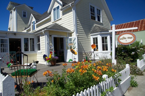 Mendocino, population about 800, is as pretty a town that you could find.  Nicely preserved old homes and cute shops, water towers, gardens and inns, all sitting atop a cliff jutting out into the pacific. The entire town is on the National Registry of Historic Places and it looks like a movie set. In fact it was. Remember Murder She Wrote? It starred Angela Landsbury and it took place in Cabot Cove, Maine? Typical Hollywood, it was filmed in Mendacino. No wonder they never showed  a snowy, Maine winter.